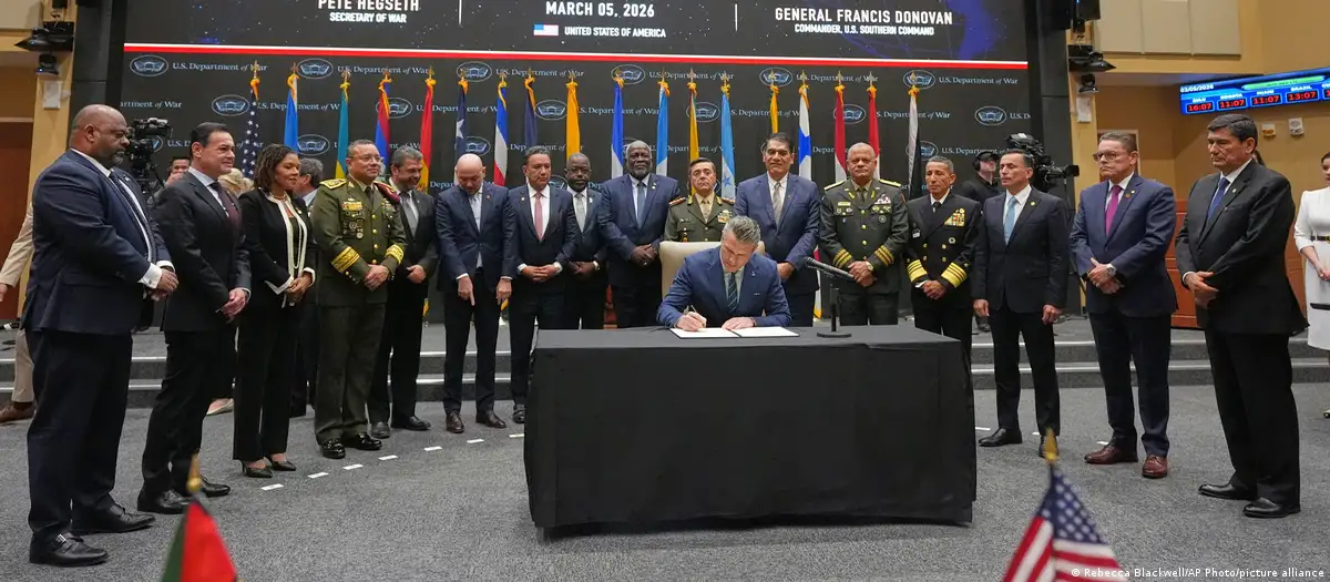 EU listo para lanzar “ofensiva” militar contra carteles; acuerda con países de América Latina combatir juntos a narcos. Estados Unidos y una veintena de países latinoamericanos firmaron en Miami, un acuerdo para combatir a los grupos “narcoterroristas” en la conferencia inaugural de las ‘Américas’, donde destacó la ausencia de representantes de México, Colombia y Brasil. El secretario de Guerra estadounidense, Pete Hegseth, leyó la declaración conjunta que “reafirma las relaciones” entre Washington y sus aliados latinoamericanos, “respetando la soberanía”, pero “promoviendo la paz a través de la fuerza”. El acuerdo compromete a las naciones “a abordar futuras amenazas al interés mutuo y unirse para combatir juntos el ‘narcoterrorismo’ en el hemisferio occidental”. Hegseth lideró la conferencia, donde congregó a representantes de países como Argentina, Bolivia, Chile, Costa Rica, Ecuador, El Salvador, Guatemala, Panamá, Paraguay, Perú, Honduras y República Dominicana.